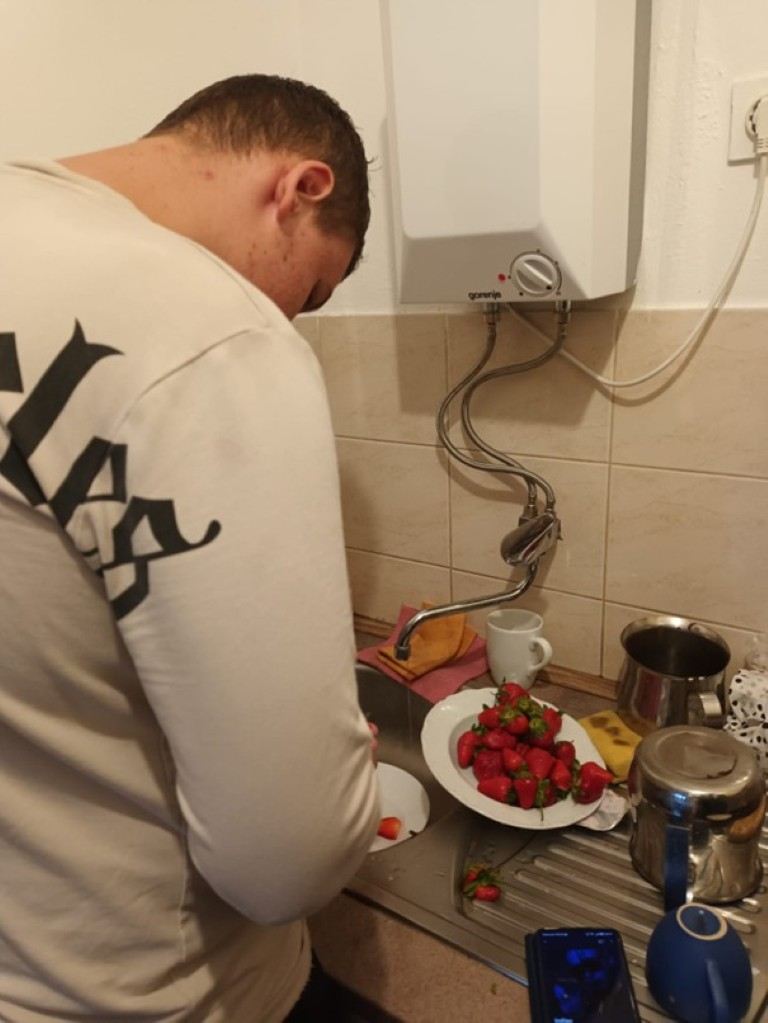 Nije da nama ikada treba neki poseban razlog da pečemo kolače i palačinke, ali ovaj put je to bilo s plemenitim ciljem. Naš korisnik je slavio rođendan, a dečki su mu odlučili sami napraviti tortu uz vodstvo i nadzor odgajateljica Lorene Cavor Kunštek i Lidije Orešić Gulin. Kao što se vidi s fotografija, izgleda zamamno, a takva je bila i po okusu.