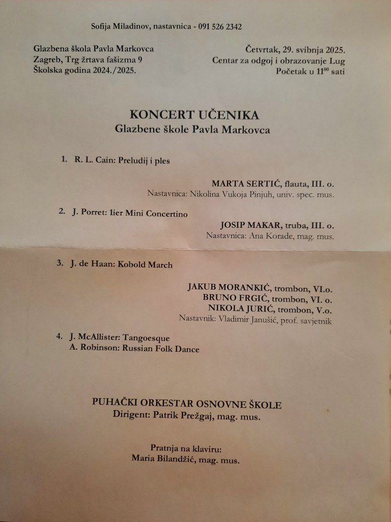 29.5.2025. u goste su nam došli članovi Puhačkog orkestra – Glazbene škole Pavla Markovca (uzrast osnovne škole).
