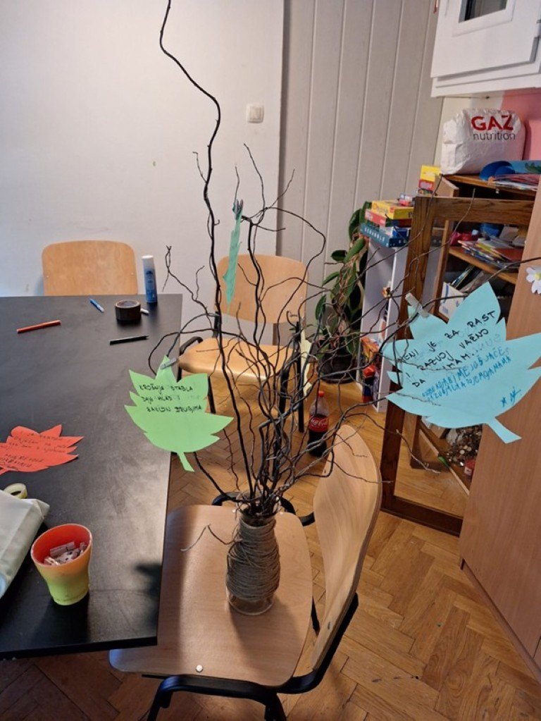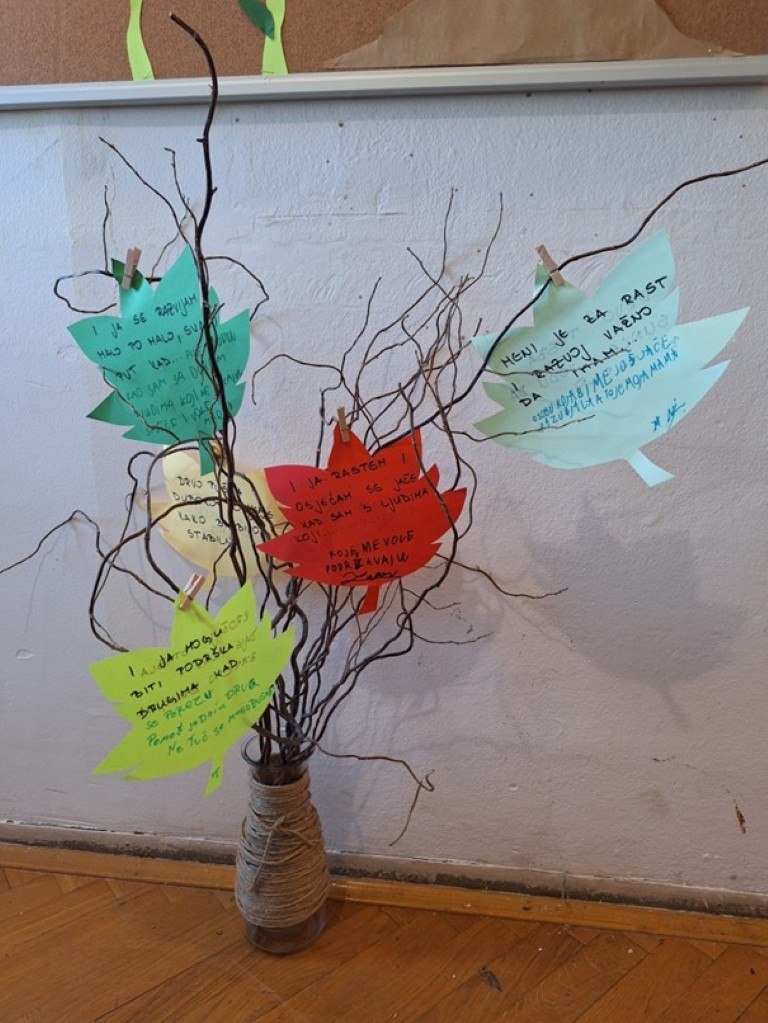 Na kraju radionice, svi su listovi obješeni na prave grane postavljene u vazu što je poslužilo kao simbol povezanosti prirodnog i osobnog razvoja, ali i kao podsjetnik na važnost brige o sebi i okolišu.