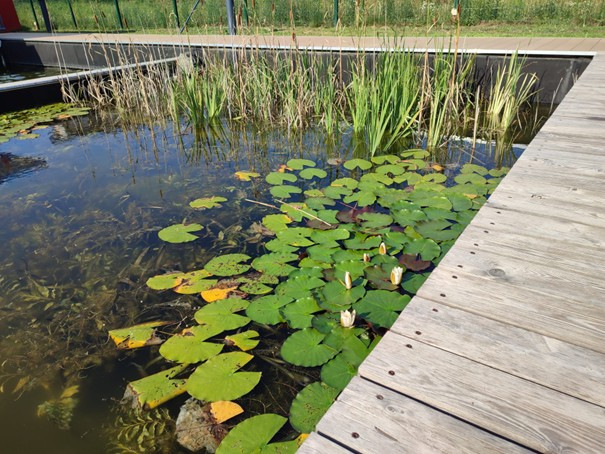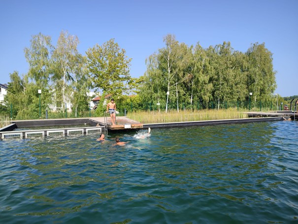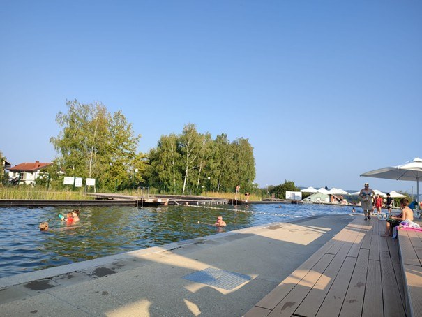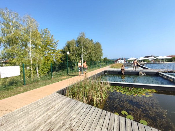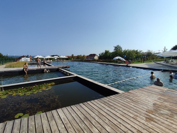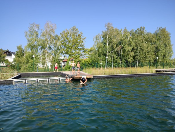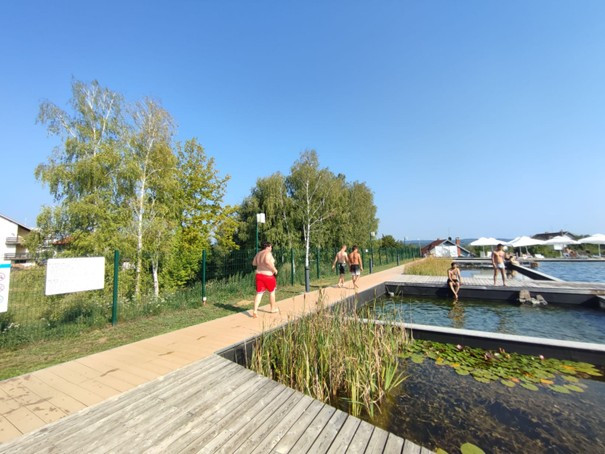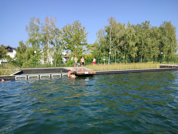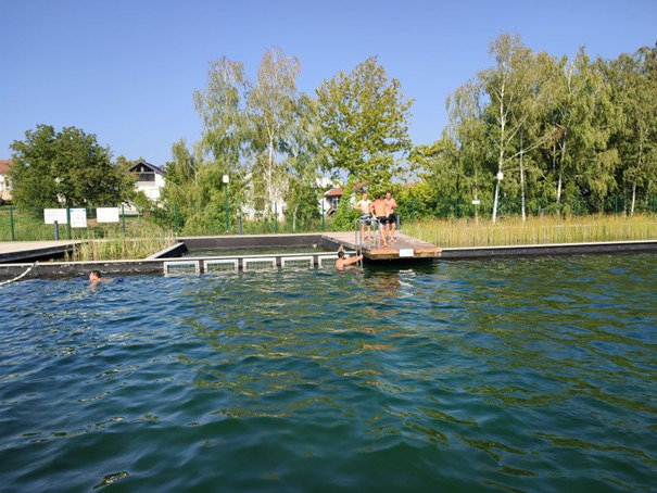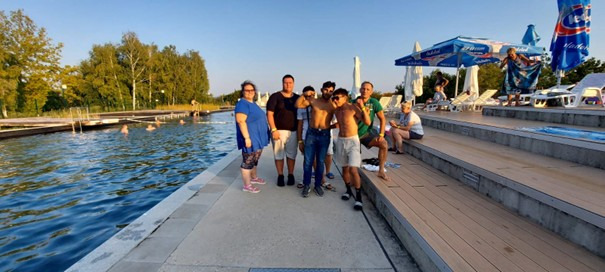U ponedjeljak smo krenuli na izlet na prvo biološko kupalište u Hrvatskoj, u Čazmu. Vani je bilo vruće i pasalo nam je osvježiti se u bazenu. Uz bazen su lopoči, trave i alge koje čiste bazen prirodnim putem. Odgajatelj Miro je dečkima pokazao skokove u vodu što im je svima bilo jako zabavno.