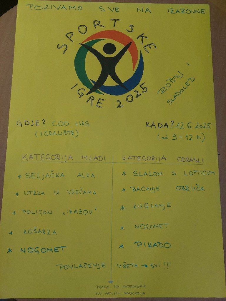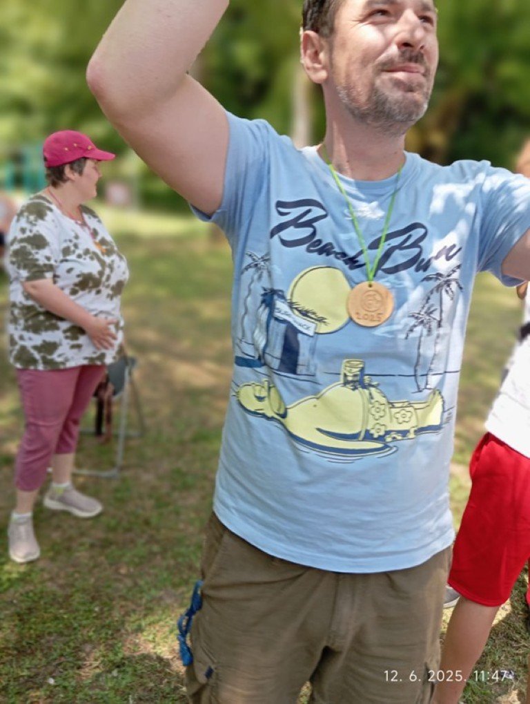13.6.2025. tradicionalno smo održali Sportske igre u našem centru. Ove godine imali smo dvije kategorije igara za odrasle i za mlade. Sudjelovali su korisnici iz svih odjela, a u nekim igrama sudjelovali su i naši djelatnici. U igre smo čak uključili i naše vrijedne kuharice. Pripreme su trajale više od tjedan dana, jer su naši vrijedni korisnici i djelatnici radili domaći sok od bazge za okrepu, medalje za sudionike, te osmišljavali igre i rekvizite. Bilo je smijeha, sporta i pjesme, a sve smo na kraju začinili roštiljem i sladoledom. Svi sudionici dobili su medalje i otišli ispunjena srca i duše sa terena.